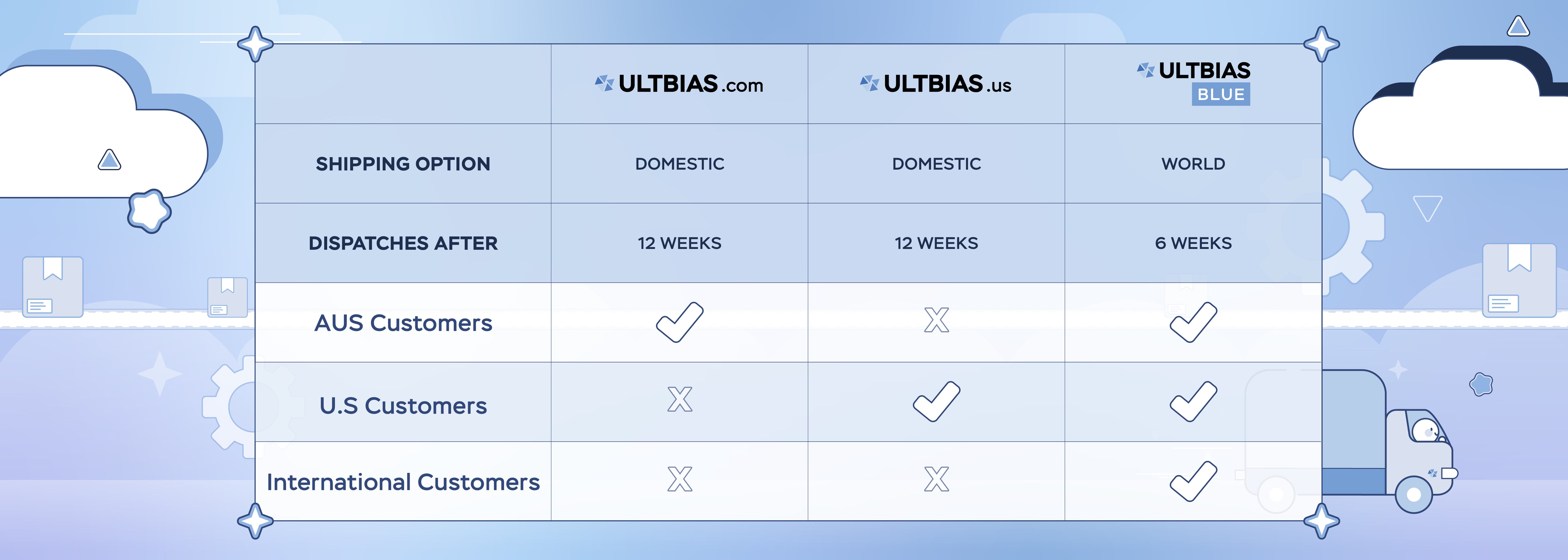 Some collectors prefer saving on shipping costs, even if it means waiting longer for their orders. By adding ULTBIAS Blue to the ULTBIAS website, we give you the choice: faster shipping (ULTBIAS Blue World Warehouse) or cheaper local shipping (ULTBIAS local sites).