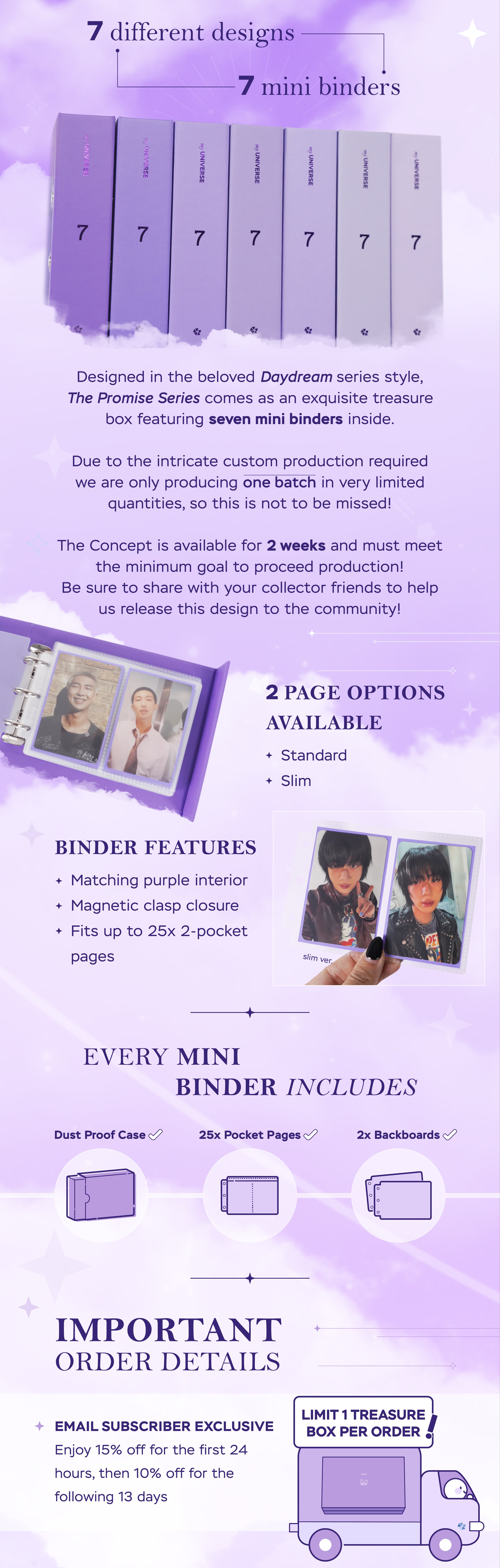 - 7 Mini myCOLLECTION binders, 7 original designs, 1 bespoke treasure box. A one of a kind limited edition piece part of the myUNIVERSE collection.